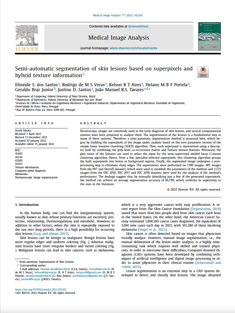 Dermoscopic images are commonly used in the early diagnosis of skin lesions, and several computational systems have been proposed to analyze them. The segmentation of the lesions is a fundamental step in many of these systems. Therefore, a semi-automatic segmentation method is proposed here, which begins by building the superpixels of the image under analysis based on the zero parameter version of the simple linear iterative clustering (SLIC0) algorithm. Then, each superpixel is represented using a descriptor built by combining the grey-level co-occurrence matrix and Tamura texture features. Afterward, the gain ratios of the features are used to select the input for the semi-supervised seeded fuzzy C-means clustering algorithm. Hence, from a few specialist-selected superpixels, this clustering algorithm groups the built superpixels into lesion or background regions. Finally, the segmented image undergoes a post processing step to eliminate sharp edges. The experiments were performed on 1380 images: 401 images from the PH2 and DermIS datasets, which were used to establish the parameters of the method, and 3,573 images from the ISIC 2016, ISIC 2017 and ISIC 2018 datasets were used for the analysis of the method's performance. The findings suggest that, by manually identifying just a few of the generated superpixels, the method can achieve an average segmentation accuracy of 96.78%, which confirms its superiority to the ones in the literature.