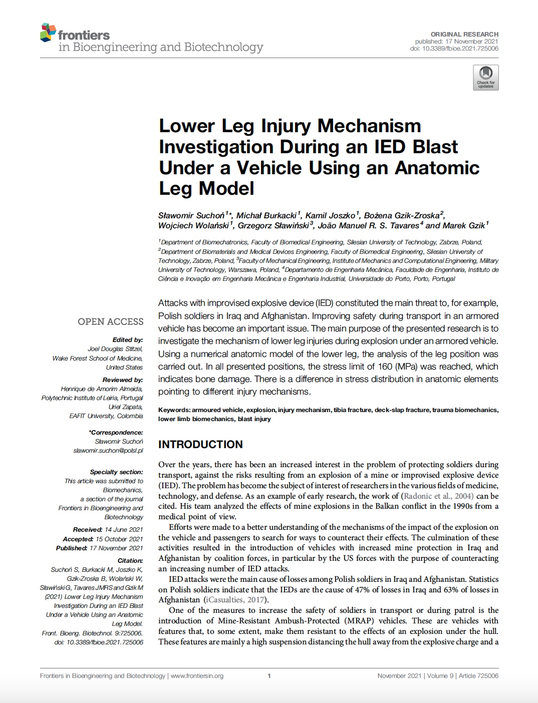 Lower Leg Injury Mechanism Investigation During an IED Blast Under a Vehicle Using an Anatomic Leg Model