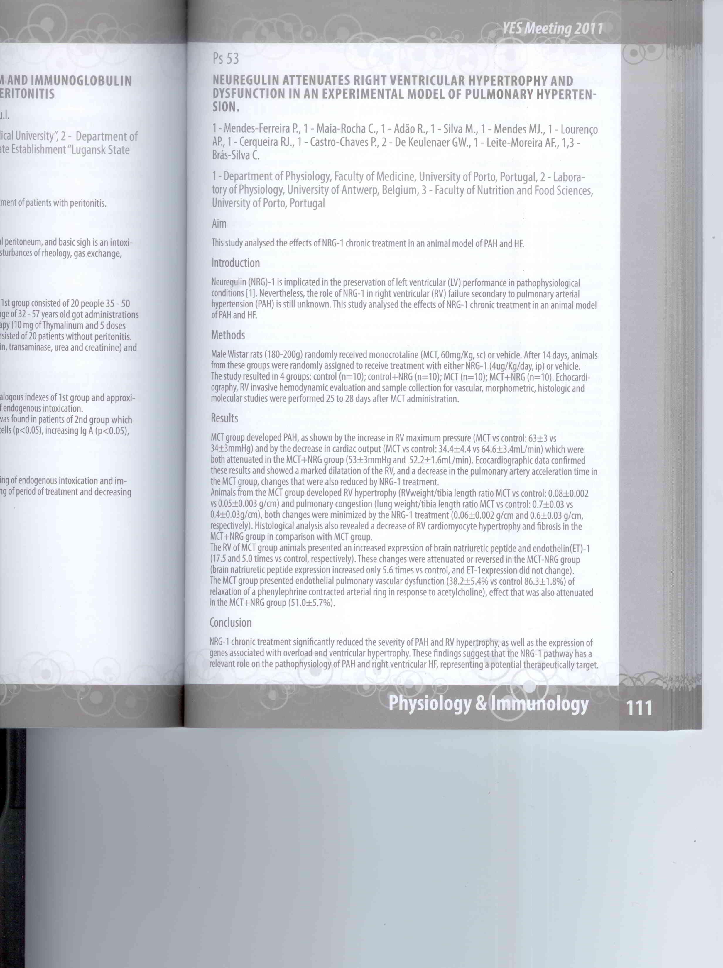 Ferreira, P. Mendes; Rocha, C. Maia; Adão, R.; Silva, M.; Mendes, M.; Lourenço, A.; Cerqueira, R.; Chaves, P. Castro; De Keulenaer, G.; Leite-Moreira, Adelino; Brás-Silva, Carmen