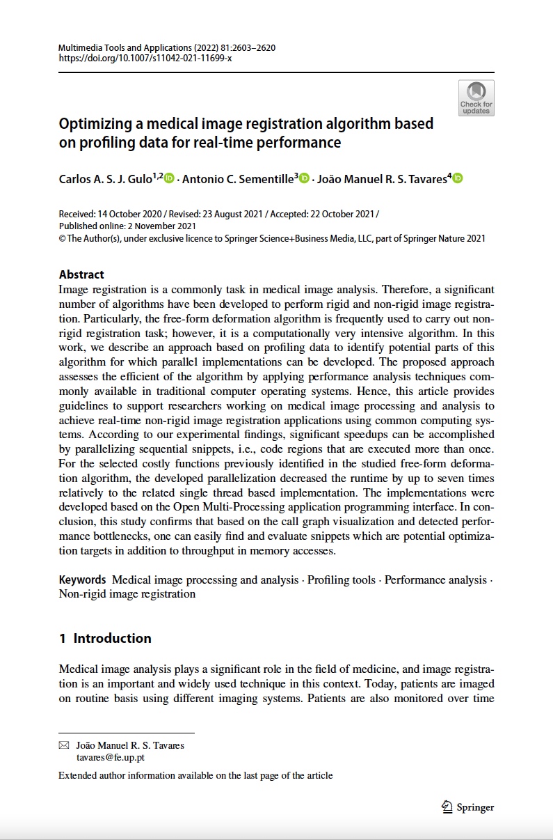 Image registration is a commonly task in medical image analysis. Therefore, a significant number of algorithms have been developed to perform rigid and non-rigid image registration. Particularly, the free-form deformation algorithm is frequently used to carry out non-rigid registration task; however, it is a computationally very intensive algorithm. In this work, we describe an approach based on profiling data to identify potential parts of this algorithm for which parallel implementations can be developed. The proposed approach assesses the efficient of the algorithm by applying performance analysis techniques commonly available in traditional computer operating systems. Hence, this article provides guidelines to support researchers working on medical image processing and analysis to achieve real-time non-rigid image registration applications using common computing systems. According to our experimental findings, significant speedups can be accomplished by parallelizing sequential snippets, i.e., code regions that are executed more than once. For the selected costly functions previously identified in the studied free-form deformation algorithm, the developed parallelization decreased the runtime by up to seven times relatively to the related single thread based implementation. The implementations were developed based on the Open Multi-Processing application programming interface. In conclusion, this study confirms that based on the call graph visualization and detected performance bottlenecks, one can easily find and evaluate snippets which are potential optimization targets in addition to throughput in memory accesses.