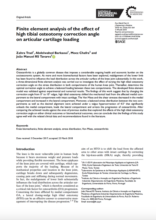 Osteoarthritis is a globally common disease that imposes a considerable ongoing health and economic burden on the socioeconomic system. As more and more biomechanical factors have been explored, malalignment of the lower limb has been found to influence the load distribution across the articular surface of the knee joint substantially. In this work, a three-dimensional finite element analysis was carried out to investigate the effect of varying the high tibial osteotomy correction angle on the stress distribution in both compartments of the human knee joint. Thereafter, determine the optimal correction angle to achieve a balanced loading between these two compartments. The developed finite element model was validated against experimental and numerical results. The findings of this work suggest that by changing the correction angle from 0 degrees to 10 degrees valgus, high tibial osteotomy shifted the mechanical load from the affected medial compartment to the lateral compartment with intact cartilage. The Von Mises and the shear stresses decreased in the medial compartment and increased in the lateral compartment. Moreover, a balanced stress distribution between the two compartments as well as the desired alignment were achieved under a valgus hypercorrection of 4.5 degrees that significantly unloads the medial compartment, loads the lateral compartment and arrests the progression of osteoarthritis. After comparing the achieved results against the ones of previous studies that explored the effects of the high tibial osteotomy correction angle on either clinical outcomes or biomechanical outcomes, one can conclude that the findings of this study agree well with the related clinical data and recommendations found in the literature.