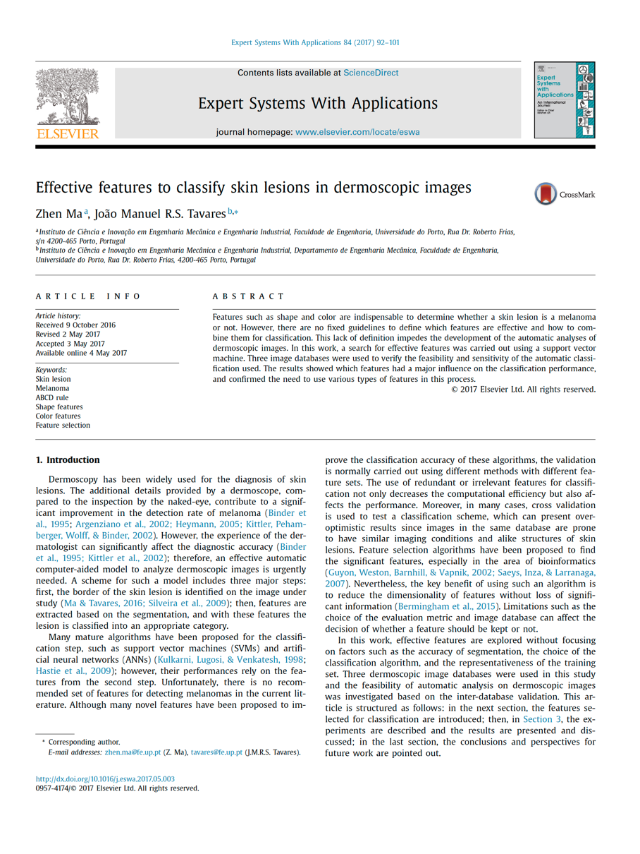 dermoscopic images. In this work, a search for effective features was carried out using a support vector